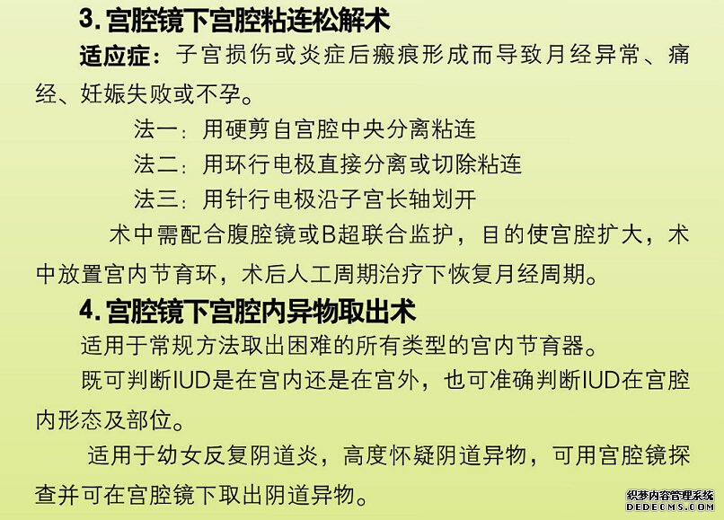 婦產科常見病、多發病的診斷及治療;不孕癥的診斷及治療;產前檢查及產前篩查;上環、取環、診刮、宮頸息肉摘除、人工流產(含無痛及可視人工流產)、子宮輸卵管通液術、宮頸活檢、外陰陰道贅生物活檢;慢性宮頸炎、CINI級宮頸微波治療、Leep術治療, 頑固性陰道炎臭氧治療技術,孕產期保健及孕產期健康教育。