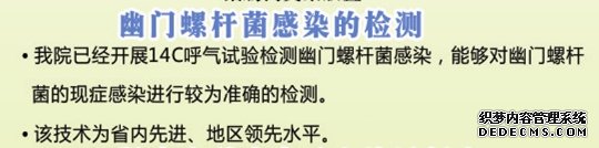 消化內科具有獨立的專科病房及消化內鏡中心,診治范圍包括胃食管返流疾病、胃炎、消化性潰瘍、胃癌、食管癌、胰腺癌、腸結核、炎癥性腸?。肆_恩病和潰瘍性結腸炎)、大腸癌、各種肝病(肝炎、肝硬化、肝癌、酒精性肝病和非酒精性肝病、藥物性肝病、肝性腦病等)、急性和慢性胰腺炎、多種原因引起的腹水、急性中毒、各種放射性消化道炎癥、消化道出血、功能性胃腸疾病等消化病的診療;消化內鏡中心是經過國家驗收的、我地區唯一一家具有開展消化內鏡下三類手術資質的消化內鏡中心,具有先進的內鏡清洗消毒設備和國際先進的進口Olympus260系列胃腸鏡及其相關附屬設備,可以開展各種消化道狹窄的擴張和放置內支架治療、各種靜脈曲張性和非靜脈曲張性消化道出血的內鏡下治療(噴灑藥物、套扎、硬化劑注射、金屬夾子應用等)、各種異物的鉗取、各種胃腸道腫物的完全和部分切除等等。