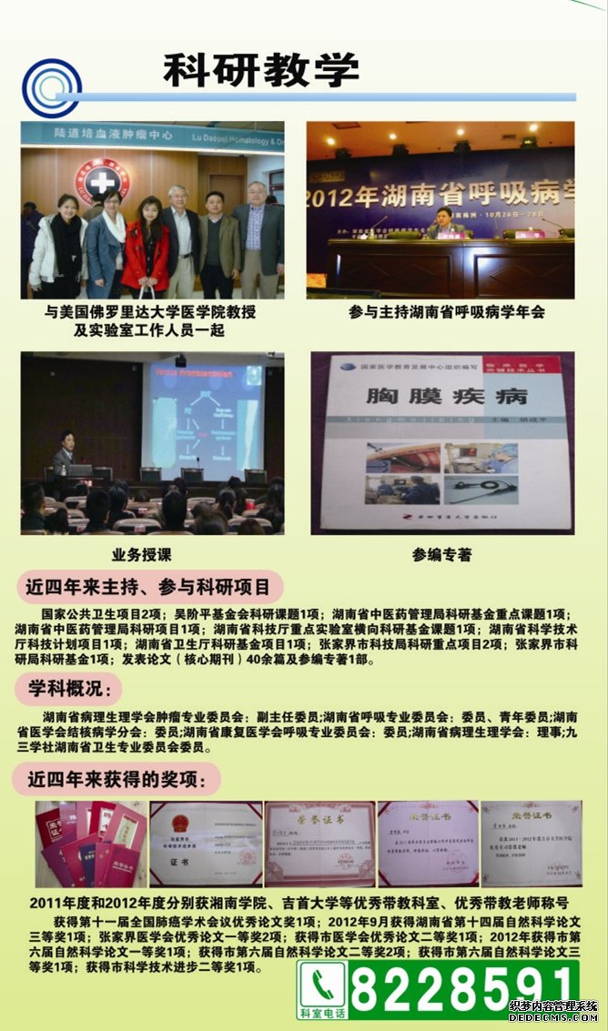 地址 內科樓五樓 咨詢電話 0744-8228591